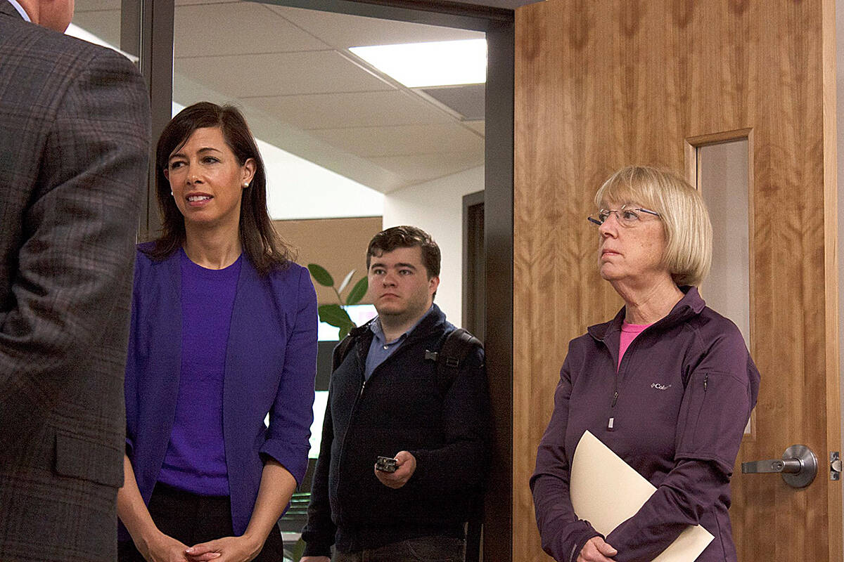 PHOTO: Jesse Major, center, with FCC Commissioner Jessica Rosenworcel, left, and U.S. Sen. Patty Murray, right, during a visit to Peninsula College in 2019. (Photo by Ricky Talbot)