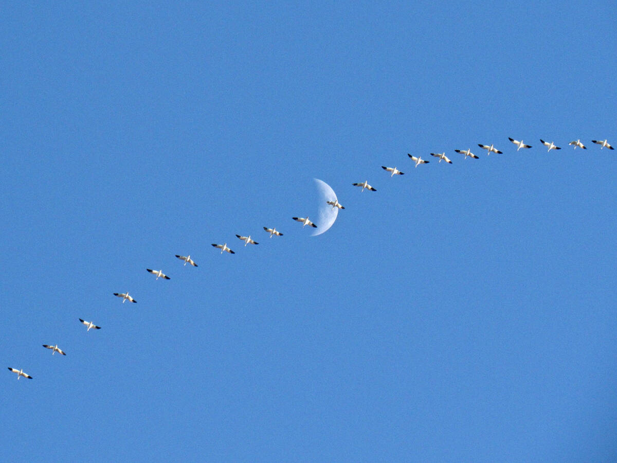 “I totally got lucky!” Greta recalled. “I heard the snow geese overhead, zoomed in quickly and shot. I didn’t even realize the moon was in the frame until I looked at the screen.”