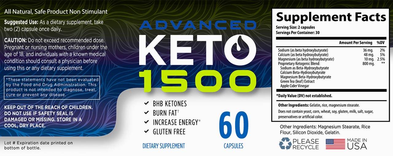 Advanced Keto 1500 is a BHB ketone supplement that helps you burn fat for energy instead of carbs. Just like the keto diet, Advanced Keto 1500 claims to kickstart your body’s natural fat-burning processes, helping you enter ketosis and start burning fat.