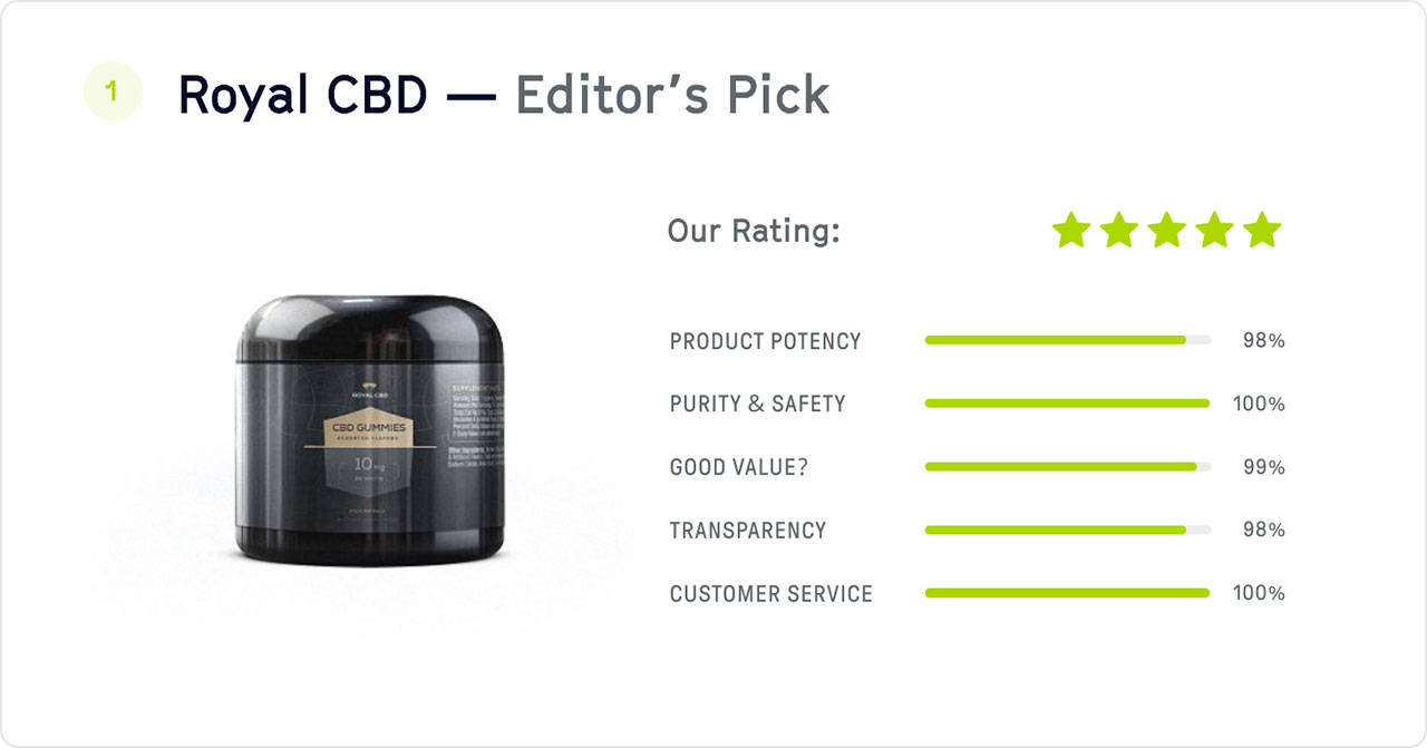 We recommend going for a reputable or award-winning CBD brand with plenty of positive recognition by real users. Our top pick is Royal CBD, followed by Gold Bee.