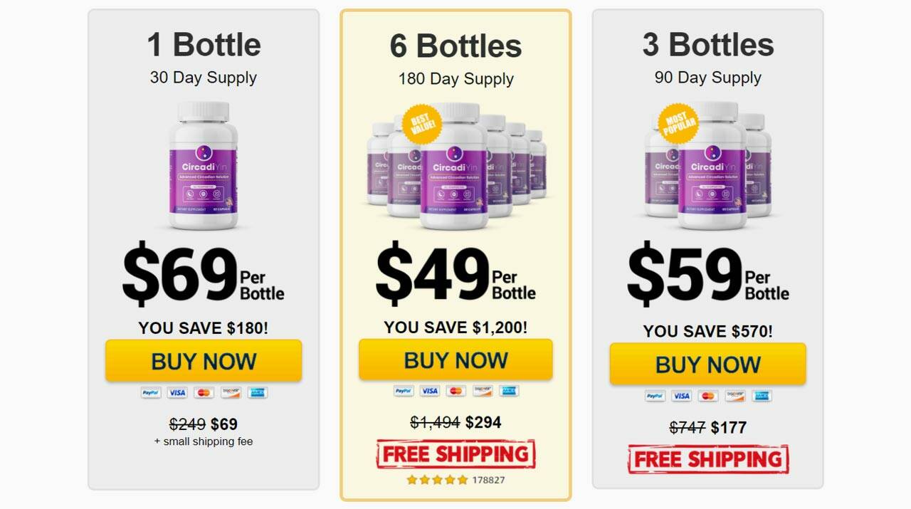 Importantly, this is a one-time payment through a secure checkout page. It requires no subscription or extra charges. More orders attract higher discounts. Additionally, the manufacturer backs each order of CircadiYin with a 60-day moneyback guarantee.