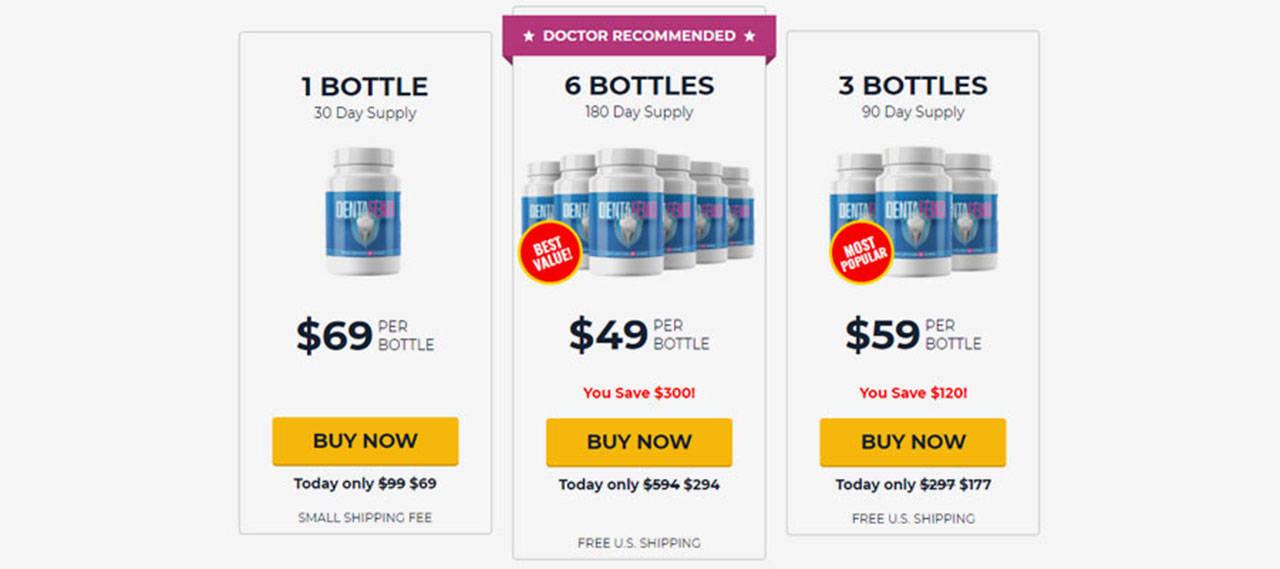 DentaFend is offered at three different price points, namely (excluding applicable shipping and handling fees):