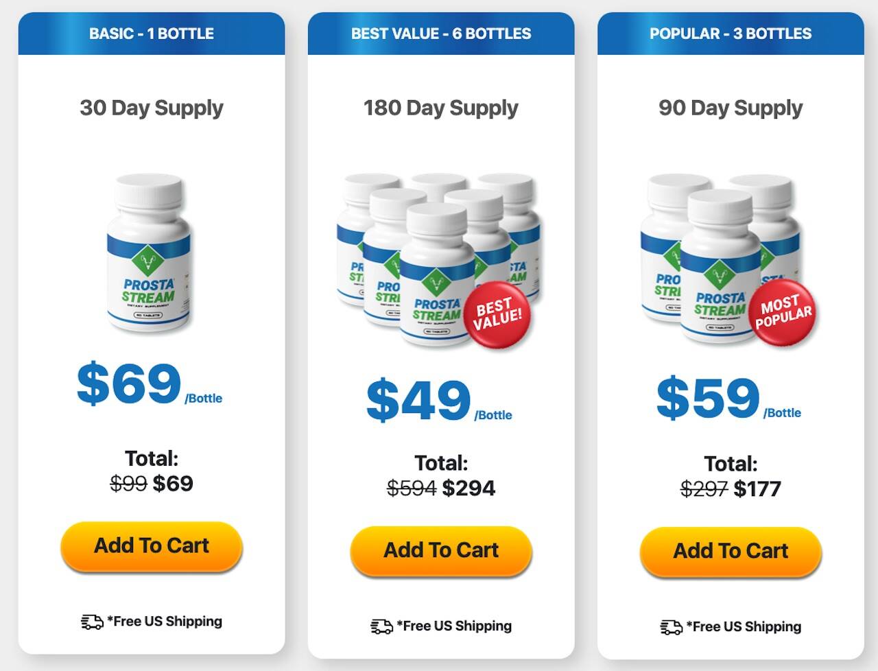 Three bottles of ProstaStream are available for just $177 — which works out to just $59 per unit.