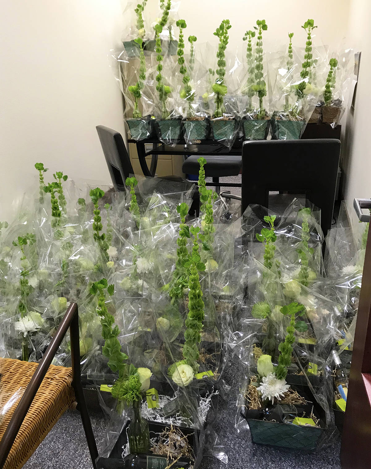 Rather than gathering at the Marina for food, drinks, music and cheer, this year the McAleer team delivered more than 370 gift baskets filled with local wine, chocolates and flowers.