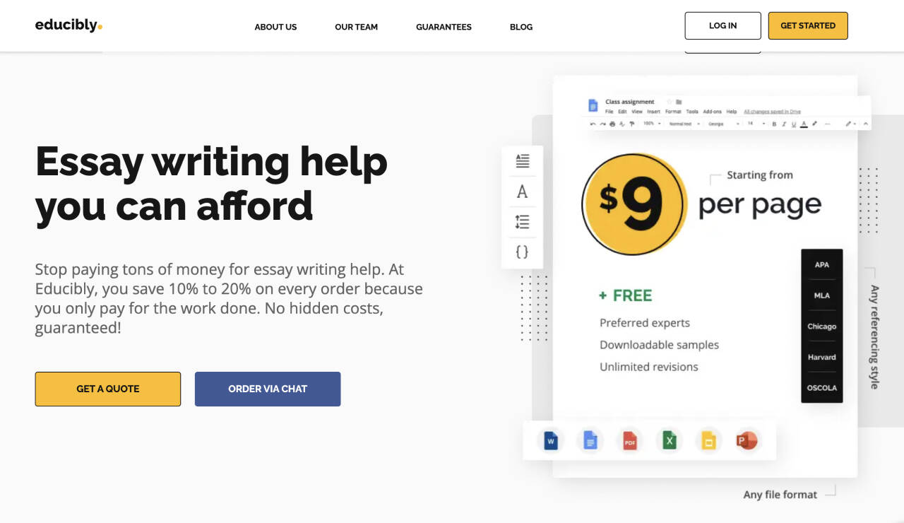 Educibly covers all kinds of academic assignments, so it can be your universal provider of study help. Students can order: