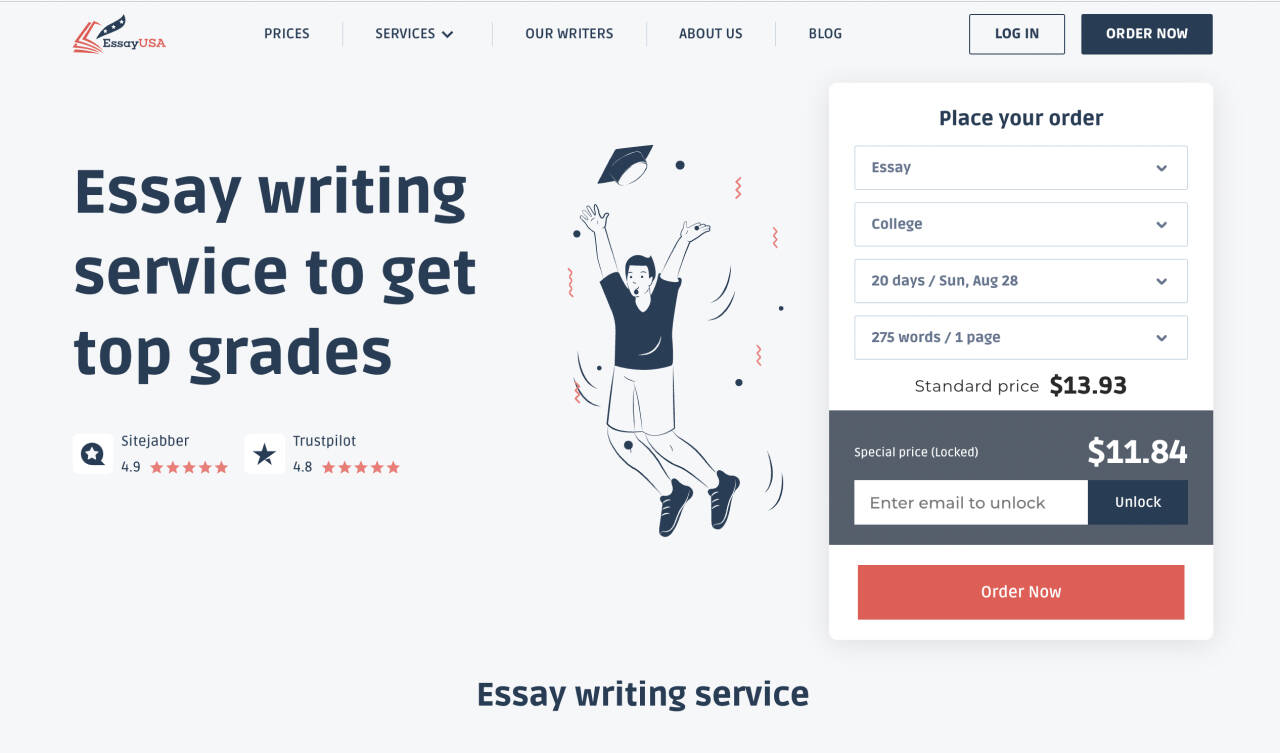 Whether you’re planning to go out or just want to have a good night’s sleep instead of writing another essay – you’ll have it with EssayUSA. The company’s writers are ready to take over your educational challenge while you’re doing what you want.Pros: