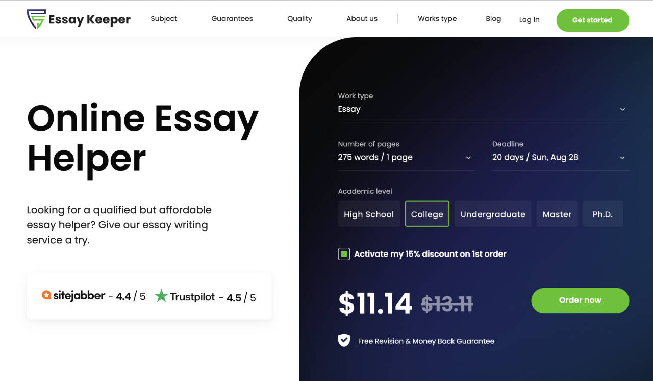 The provider will help you balance studies and college life without a strain on your budget. You’ll never face the dilemma of studying over having a rest or going out with friends – Essay Keeper has got you covered.