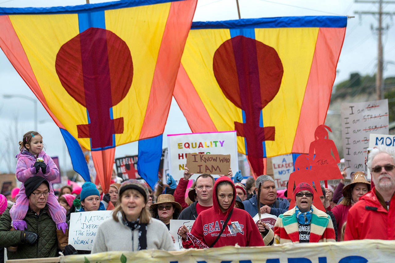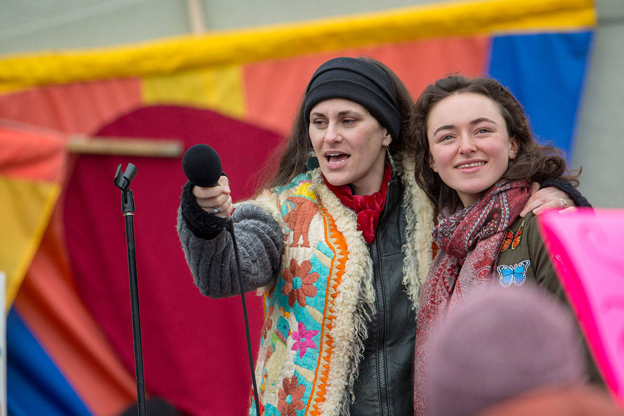 Port Townsend Mayor Deborah Stinson and Jefferson County Commissioner Kate Dean took the stage together to read a proclamation declaring that Sunday was Womxn’s March Day.
