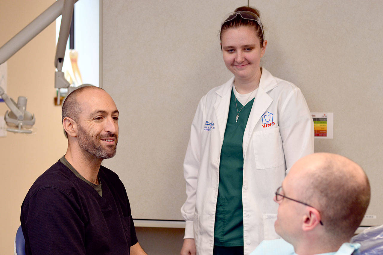 On the Monday after Veterans Day last month, VIMO held a special clinic for those who’ve served in the military. Drs. Greg Royack and Steve Turella and dental hygienist Linda Ward treated patient after patient in the clinic’s five operatories.