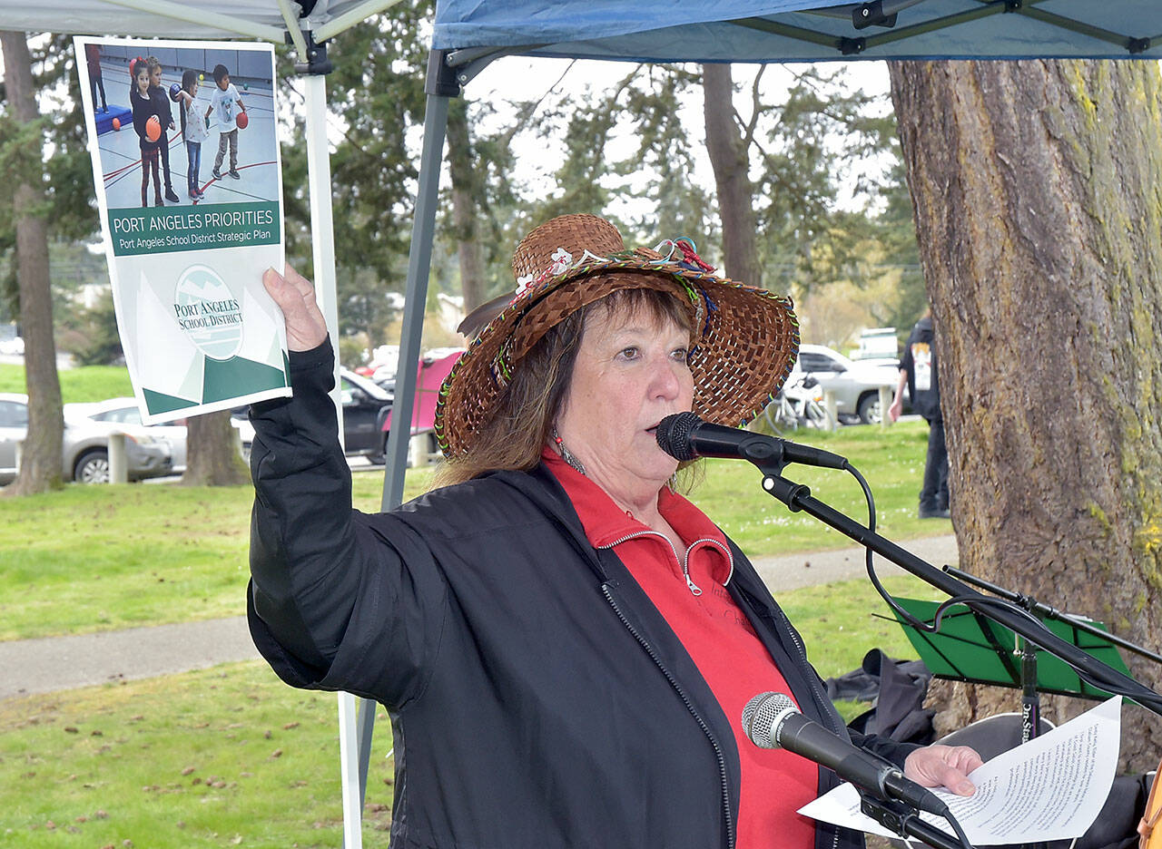 Among the speakers were former teacher Nancy McCabe and former Port Angeles School Board member and Washington State Native American Education Advisory Committee Cindy Kelly, who read from the district’s strategic plan.