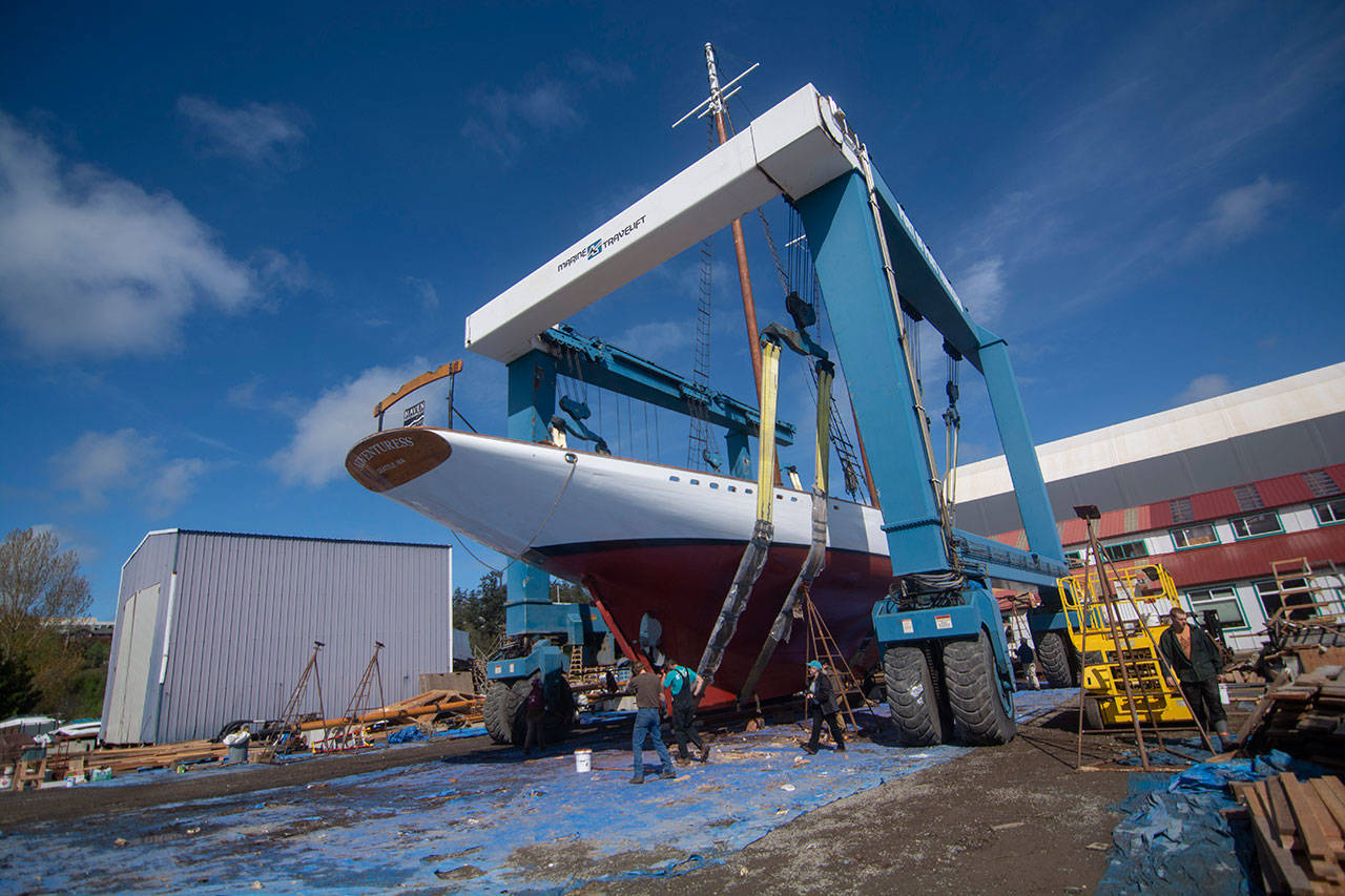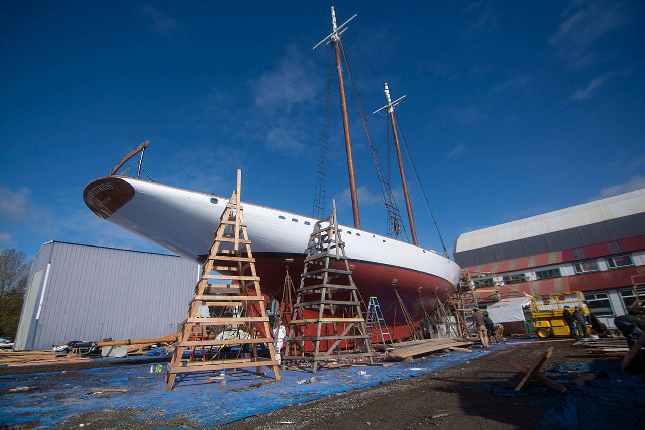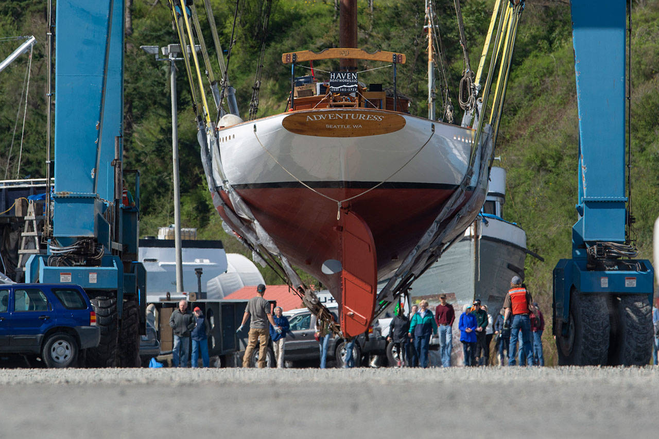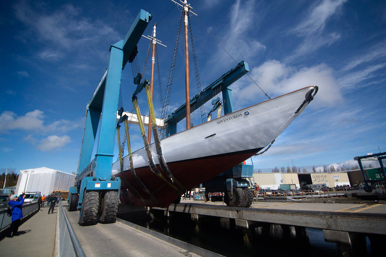 The Adventuress had been out of the water since October and at Haven Boatworks, the company that has spent thousands of hours over the last decade restoring the vessel.