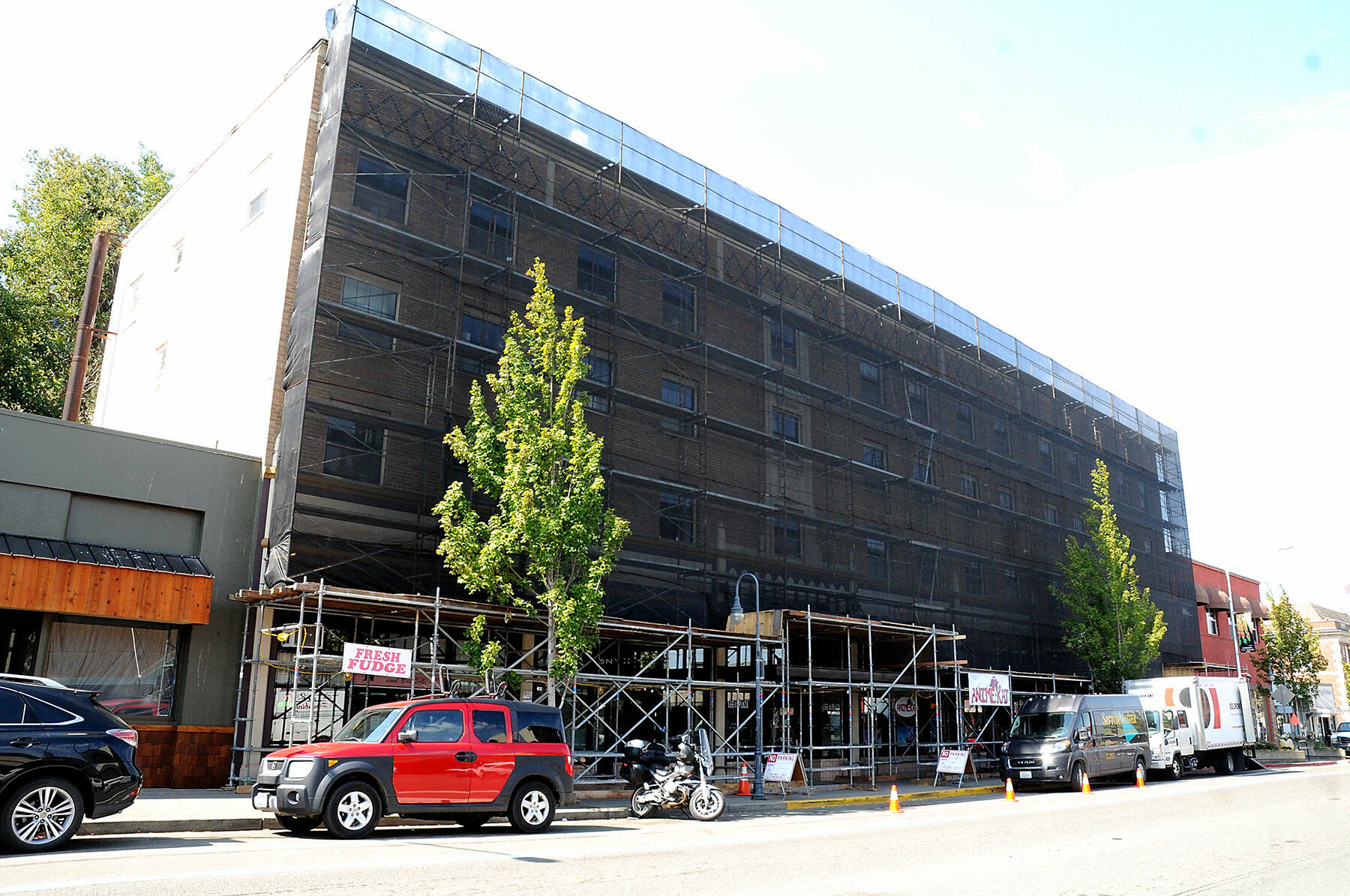 PORT ANGELES — Scaffolding lining a portion of one block of First Street in downtown Port Angeles is among the Peninsula Housing Authority efforts to revamp the look and operation of some of their affordable housing units.