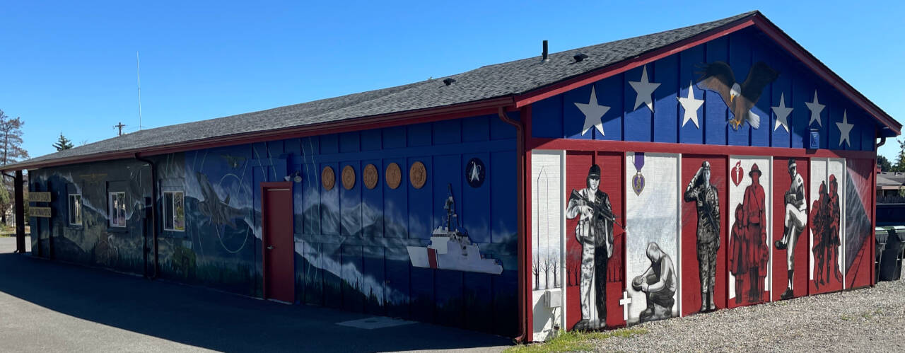 About a year and a half ago, the local military service advocacy group teamed up with Klein to develop a mural that will span the hall’s south and west sides: on the south-facing side, bright red, white and blue with several figures of soldiers, war-themed symbols, symbols of American Legion activities and, soaring above it all, a bald eagle. On the building’s west-facing side is landscape and seascape featuring the mechanisms of war — including an F-18 aircraft, U.S. Coast Guard cutter, a tank, helicopters and more — along with a representation of and detailed biography of Jack Grennan, for whom the post is named.“What we want,” Bradshaw said of the mural in a previous interview, “is to show what we’ve (the American Legion has) done.”