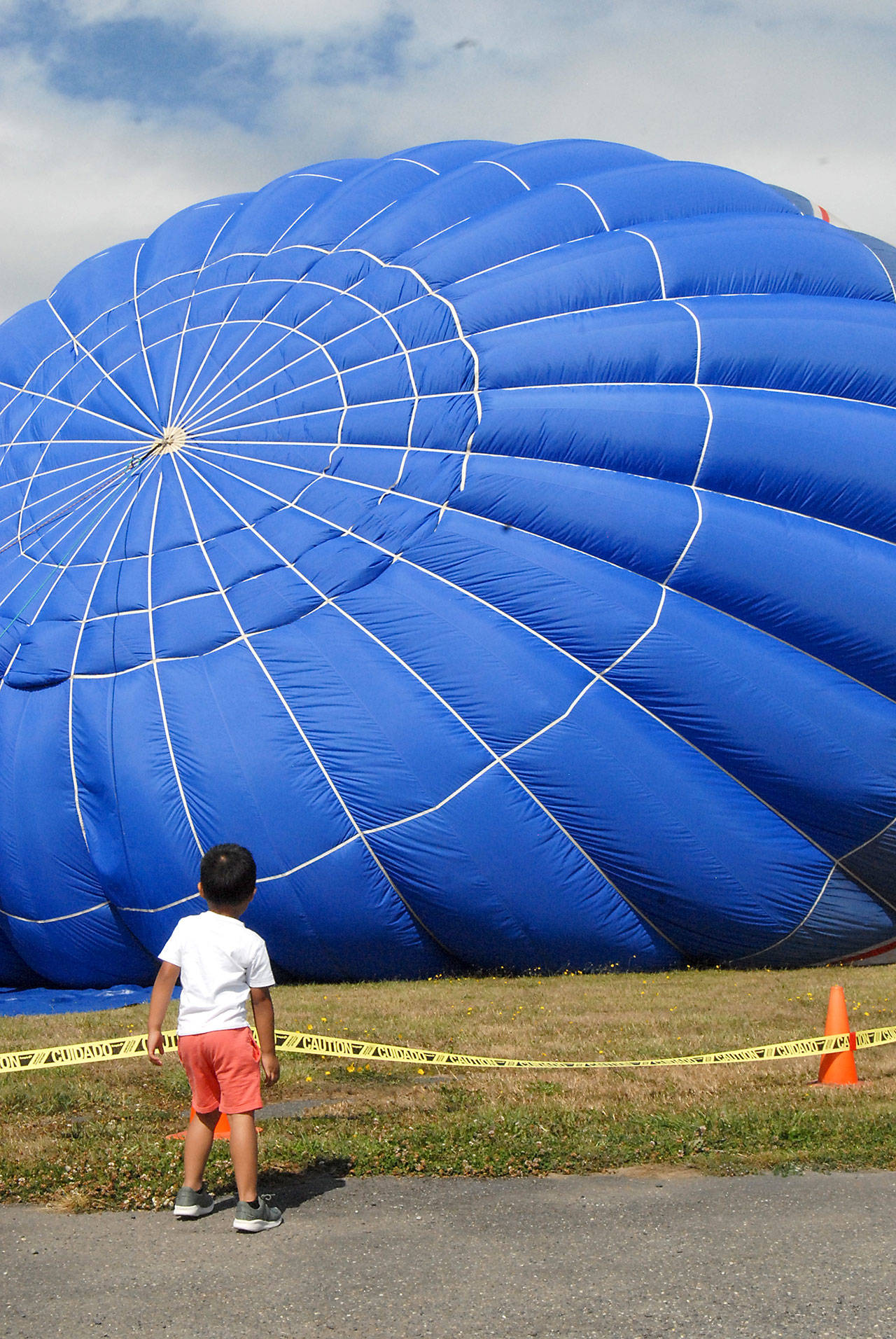 Kyrie Betonio, 4, of Hoquiam watches a static hot air balloon belonging to Morning Star Balloon Co. (Keith Thorpe/Peninsula Daily News)