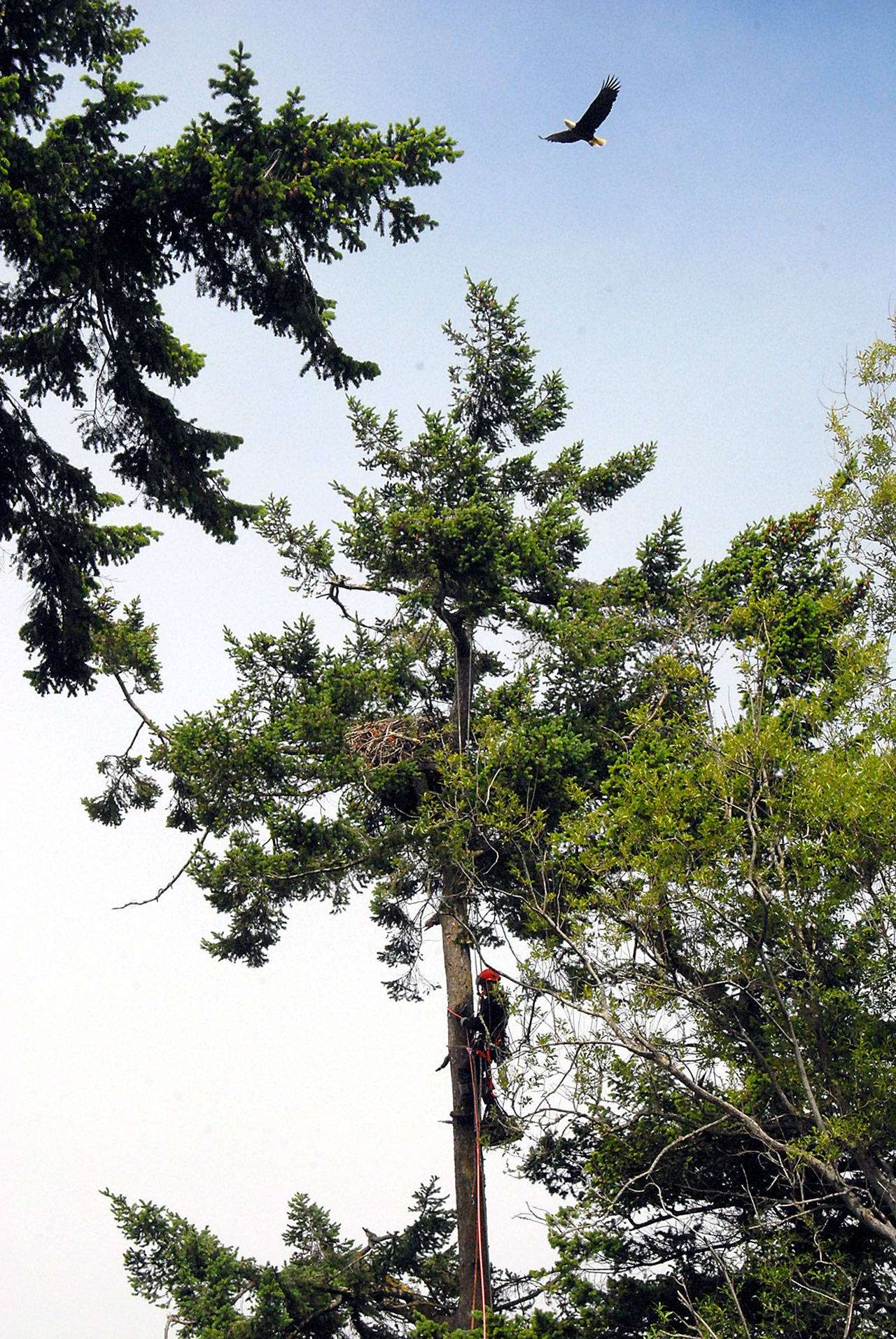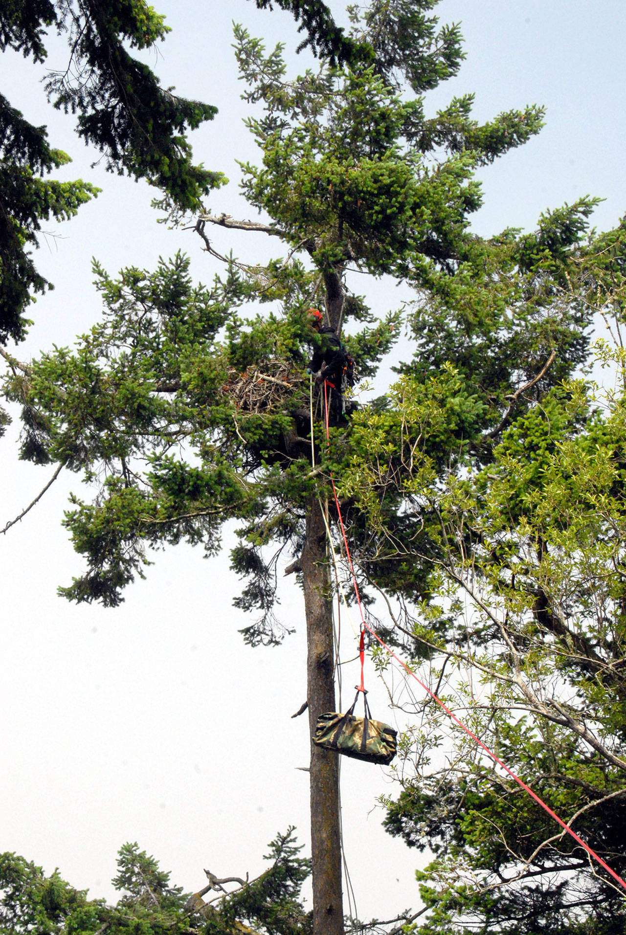 This one was confirmed to be an old, flat nest by the climber who replaced the eaglets in the nest, Moore said.