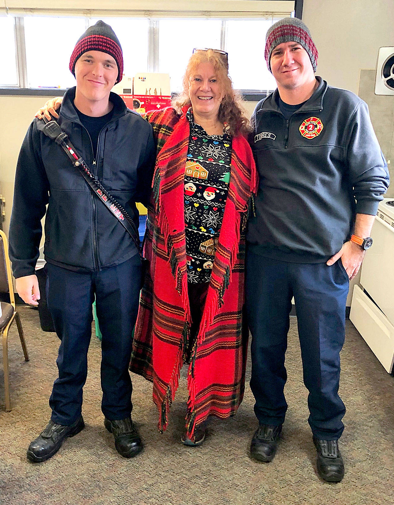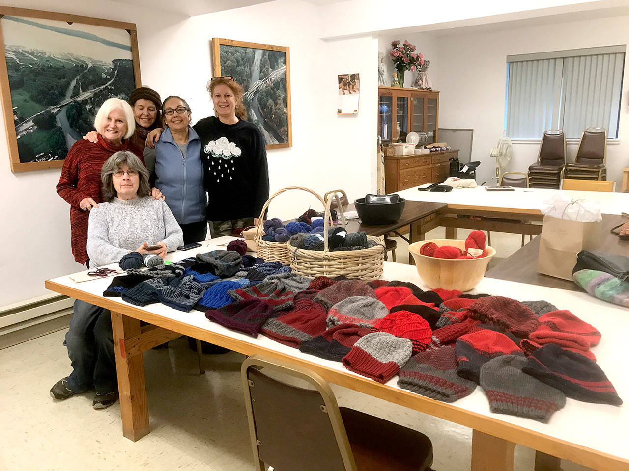 The Brinnon and Quilcene Community Knitters knitted 61 caps for first responders who work at the Brinnon Fire Department, Quilcene Fire Rescue and the Jefferson County Sheriff’s Office.