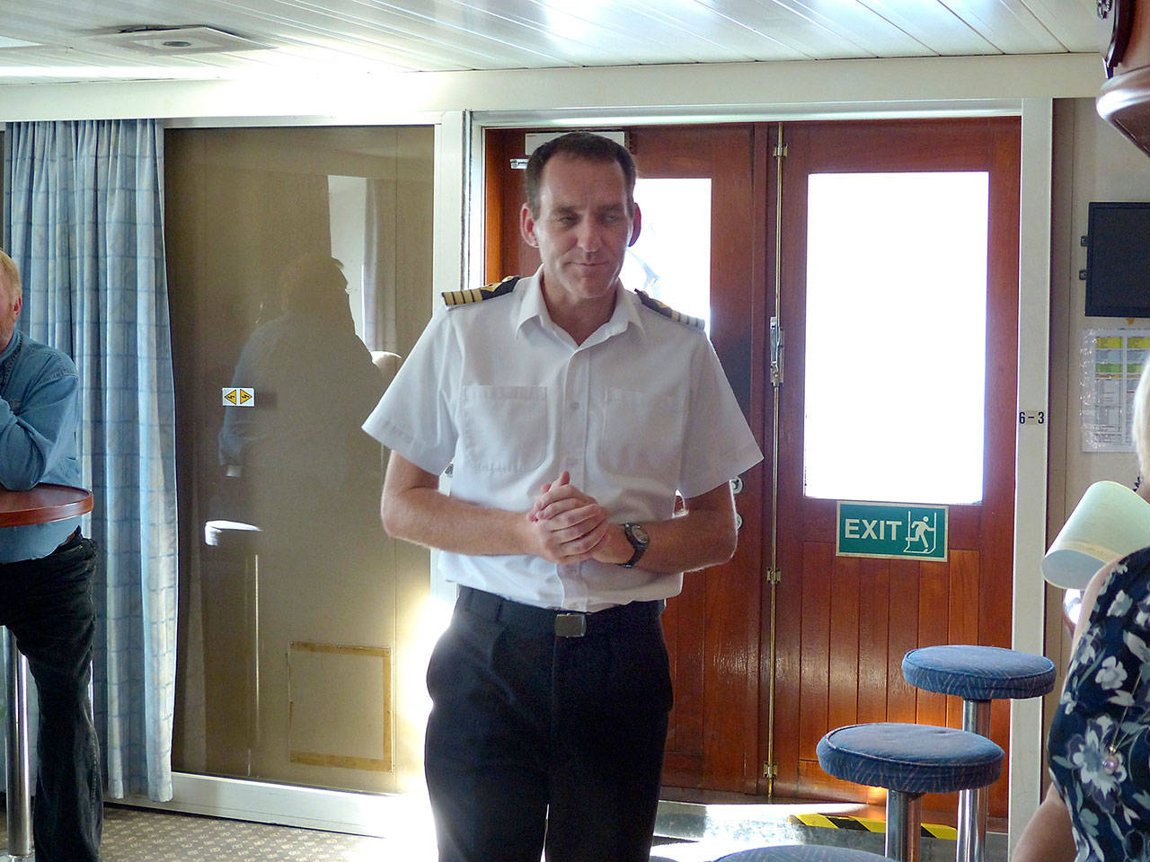 We assembled in the bar area where Capt. Paul Hajnes welcomed us aboard his ship — which flies a United Kingdom flag and is manned by a predominately British crew — and invited us to partake of light tea, which was waiting for us.