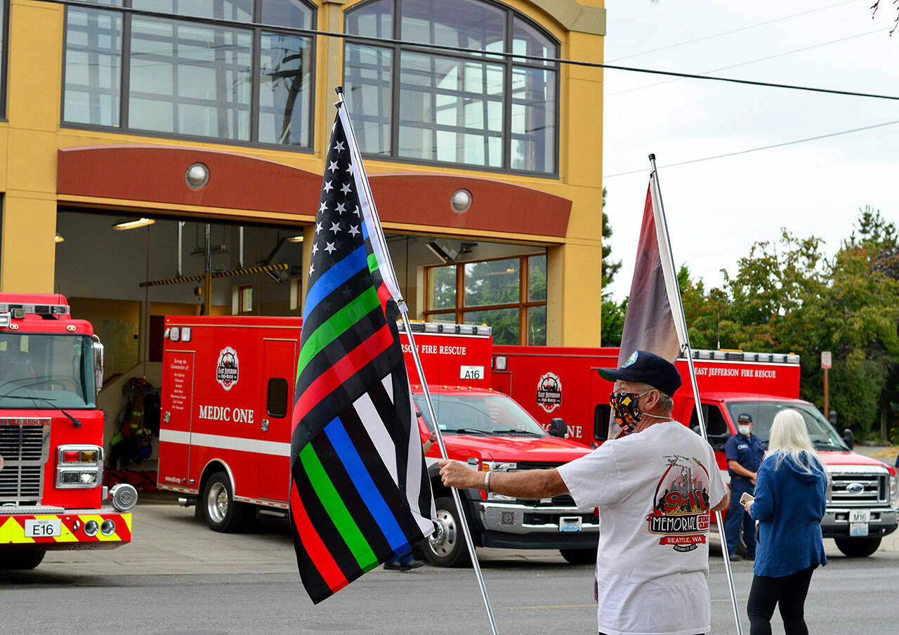 Fire and police officials and civilians from around East Jefferson County marked the 20th anniversary of 9/11 with flags and a moment of silence.