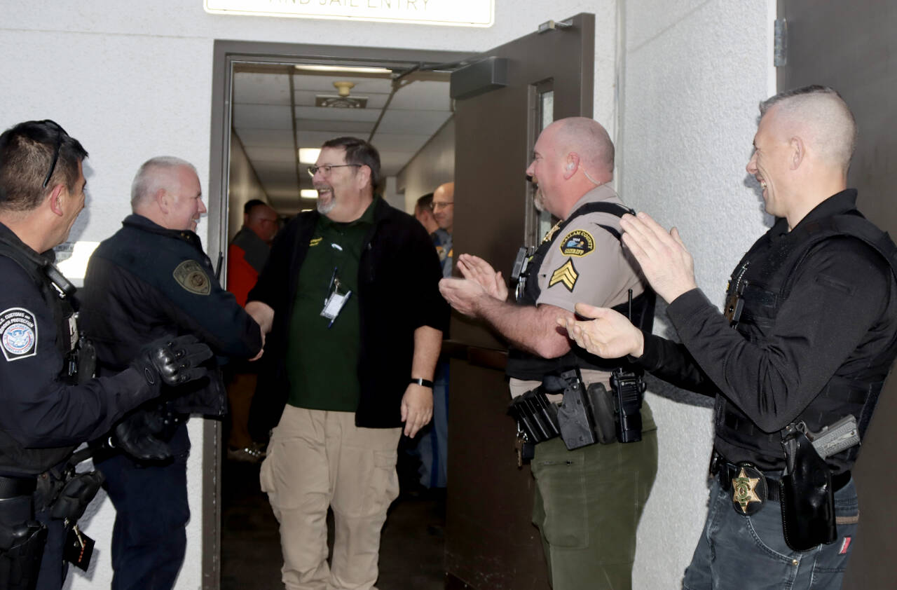 Cameron, who had served with the Clallam County Sheriff’s Office for 38 years, passed through a friendly gauntlet of fellow employees as he left his office, where he most recently served as undersheriff, emergency management department manager and emergency operations center project manager.