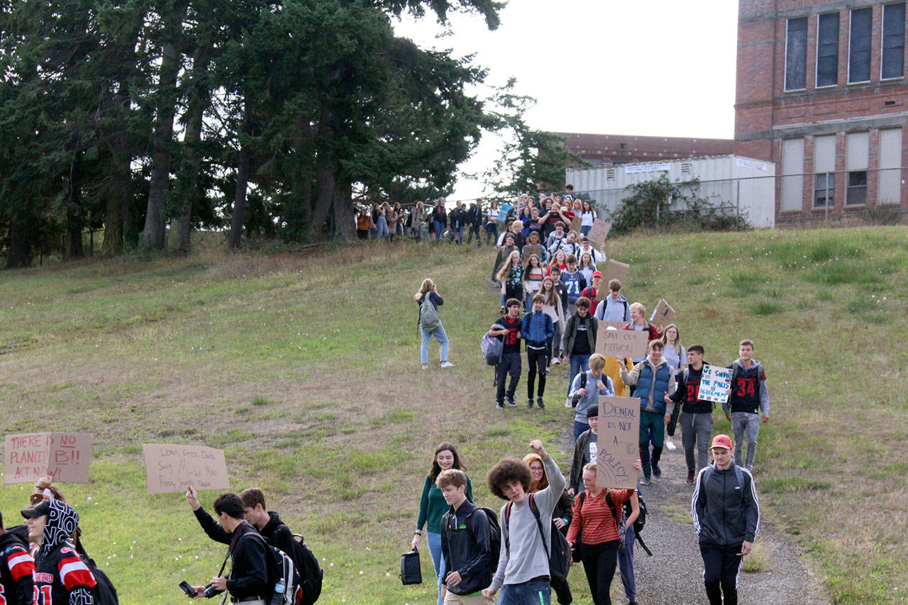 About 200 Port Townsend High School students, supported by some 400 adults, and another 200 Chimacum High School students walked out of class for 10 to 20 minutes Friday.