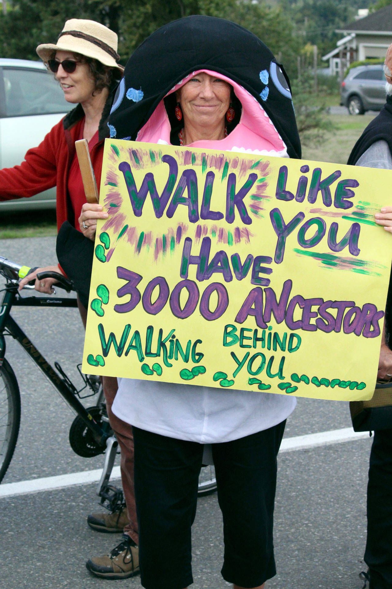 One group outside the fence was the North Olympic Orca Pod. Members are known to show up to events such as this dressed in orca costumes to bring attention to the endangered Southern Resident orcas.