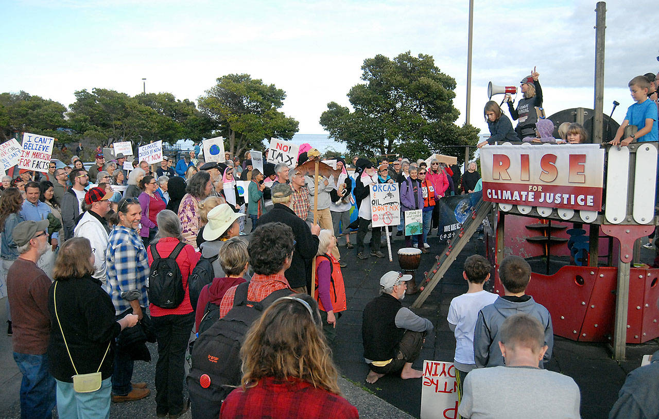 About 300 attended a Port Angeles rally organized by Olympic Climate Action (OCA) that evening.