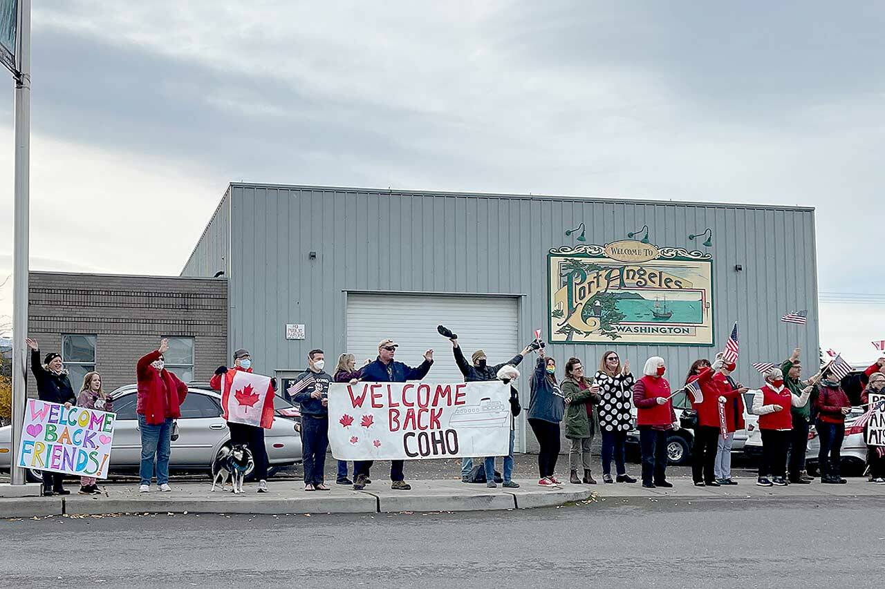 PORT ANGELES — Passengers disembarking from the MV Coho received quite the welcome from a small but boisterous crowd that welcomed folks into to the U.S. from the marine crossing for the first time in 20 months.