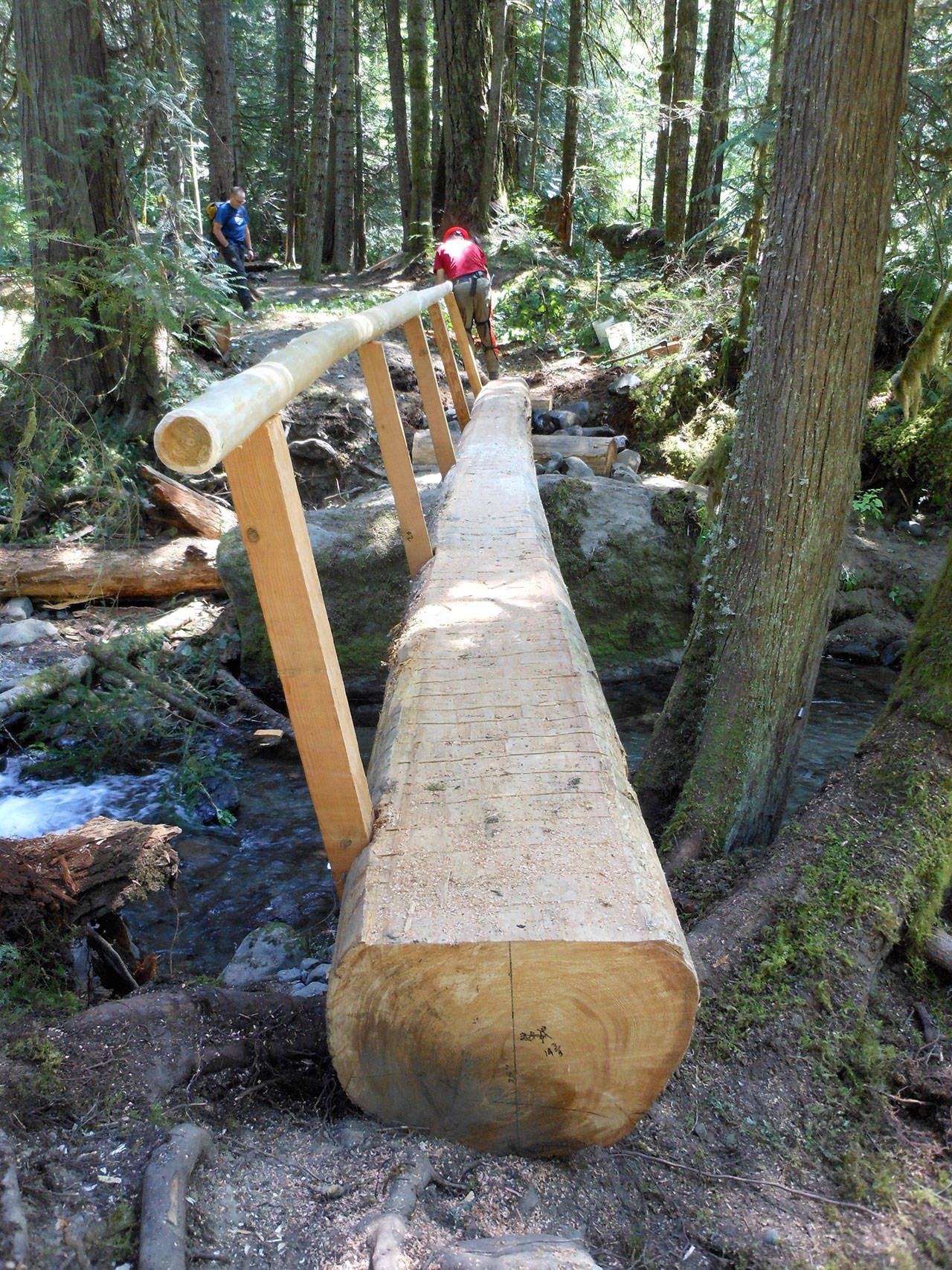 As an effort between the Back Country Horsemen – Peninsula Chapter, Gray Wolves, Pacific Northwest Trails Association — Quilcene Ranger Corp and Klahhane hiking club, led to the installation of the foot log in July.