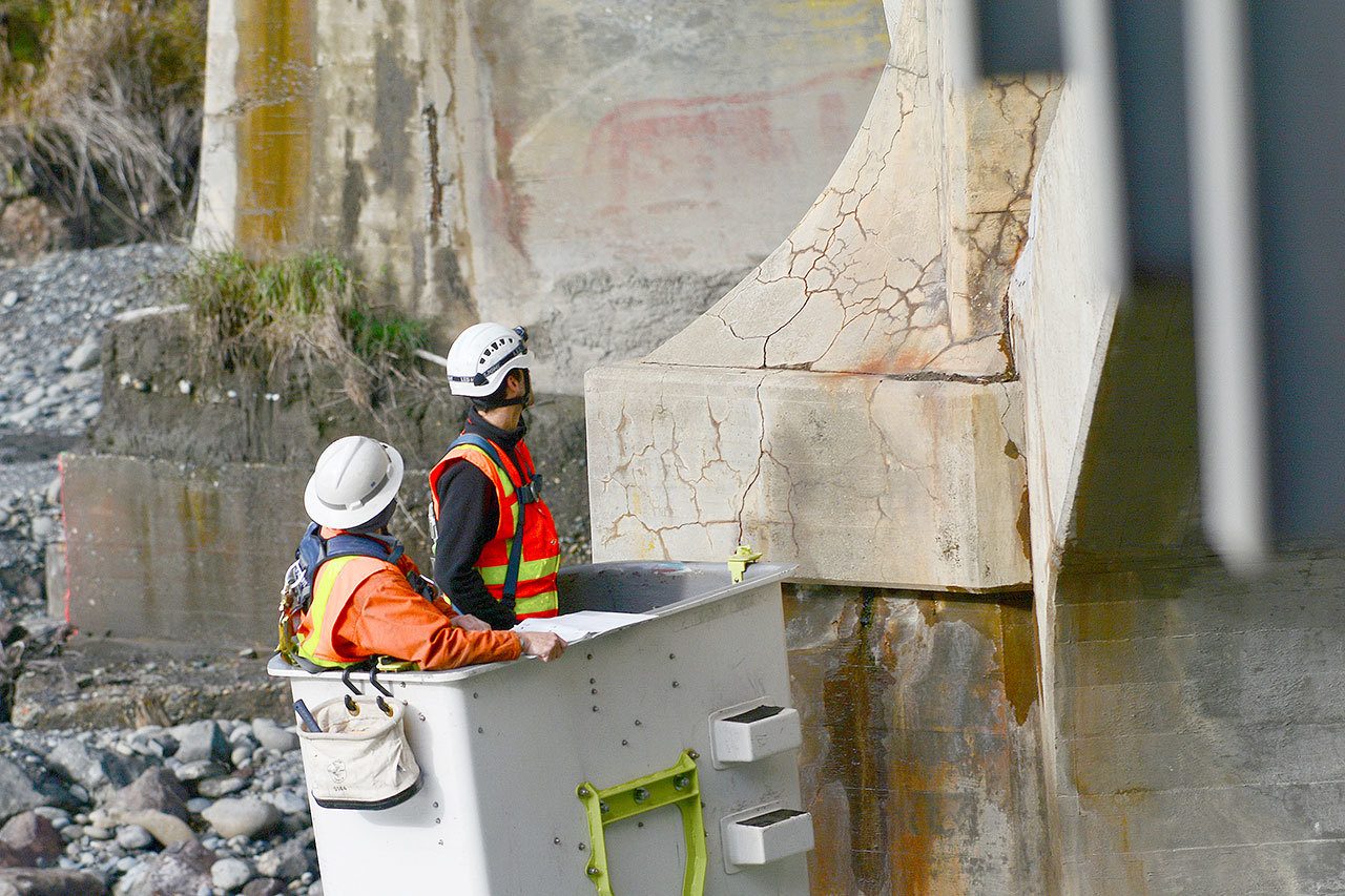 Crews worked Tuesday to inspect and monitor a crack in the 90-year-old bridge, less than a month after Transportation confirmed the bridge was built on gravel instead of bedrock.