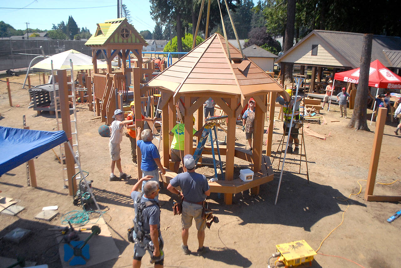 PORT ANGELES — Despite a flurry of last-day activity, the Generation II Dream Playground finished its planned six-day construction schedule on Sunday with much work still to be completed, but plans are already in the works for the remaining pieces to fall into place.
