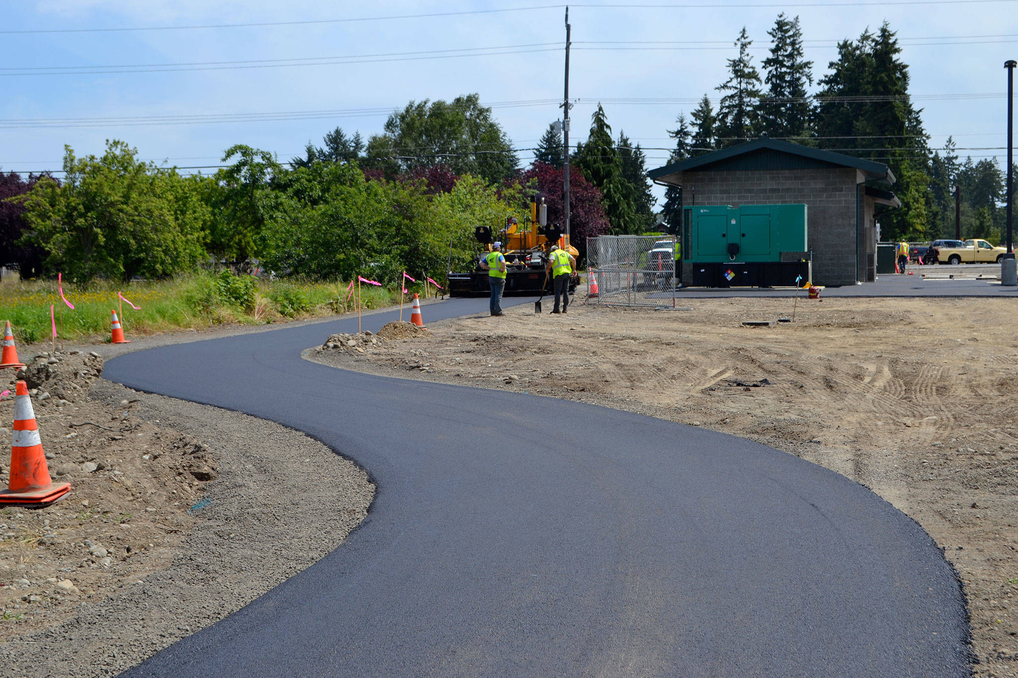 Meggan Uecker, solid waste coordinator for Clallam County, said crews with contractor Pacific Civil and Infrastructure are striping the roads including Carlsborg Road and Business Park Loop, paving the pump station, rerouting the Olympic Discovery Trail and paving a portion of Hooker Road south of U.S. Highway 101.