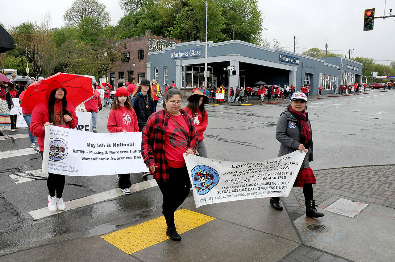 PORT ANGELES — Missing and murdered Indigenous persons must not be forgotten, a group of speakers told a crowd of about 100 people who gathered Friday morning at The Gateway transit center to observe the national Missing or Murdered Indigenous Persons Awareness Day.