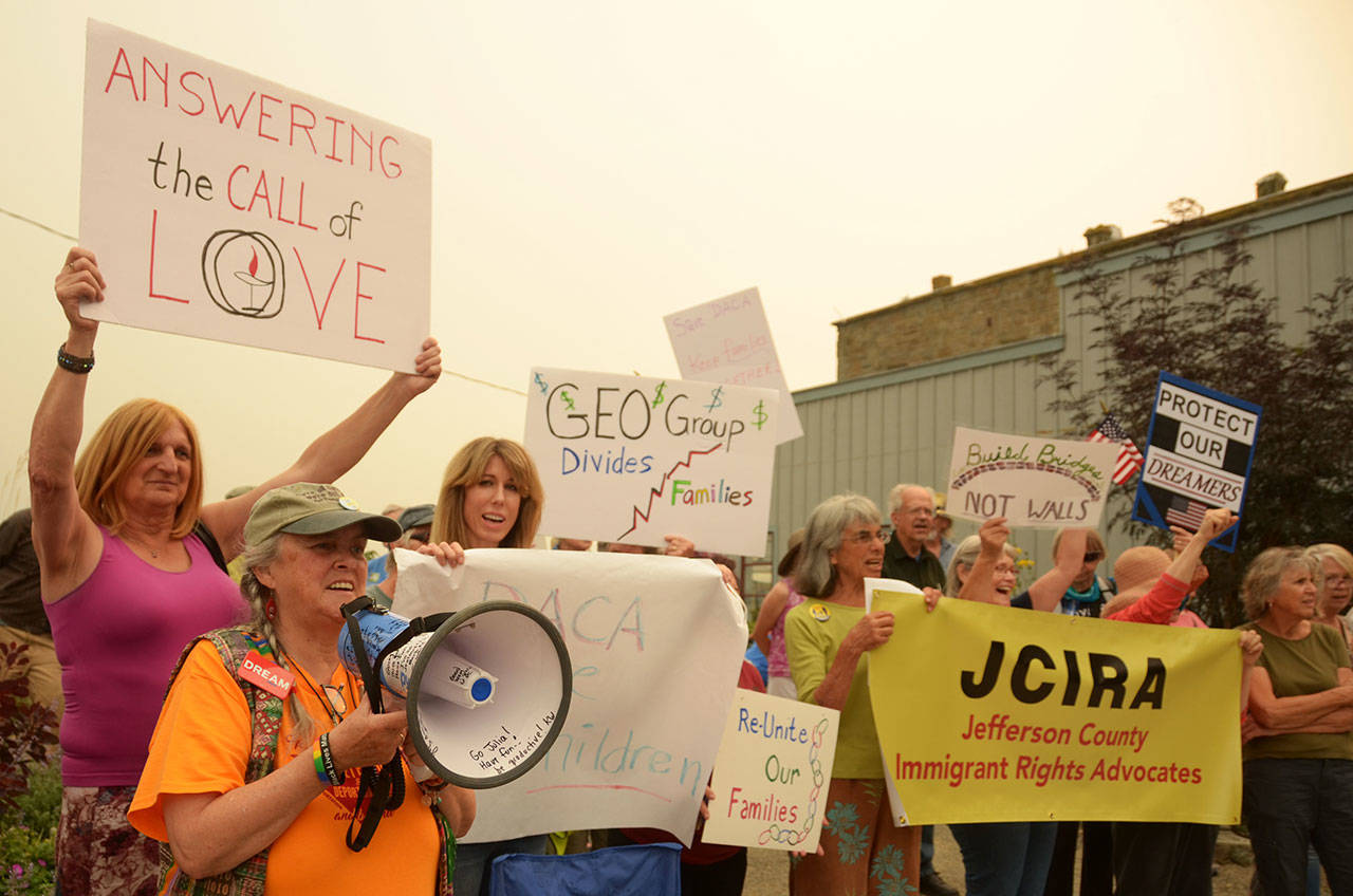 Libby Palmer of Jefferson County Immigrant Rights Advocates, an organizer of the rally, said she had more faith in state Attorney General Bob Ferguson’s threat to file suit against the move than Trump’s or Congress’ will to act with heart or compassion.
