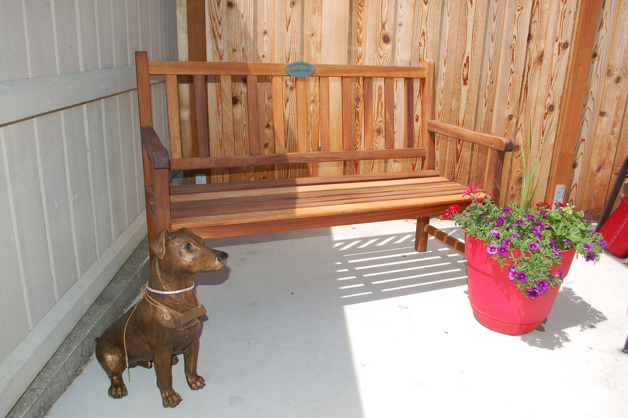 A statue of her dog, Jack, also was made with a name tag that reads “brave to the end.”