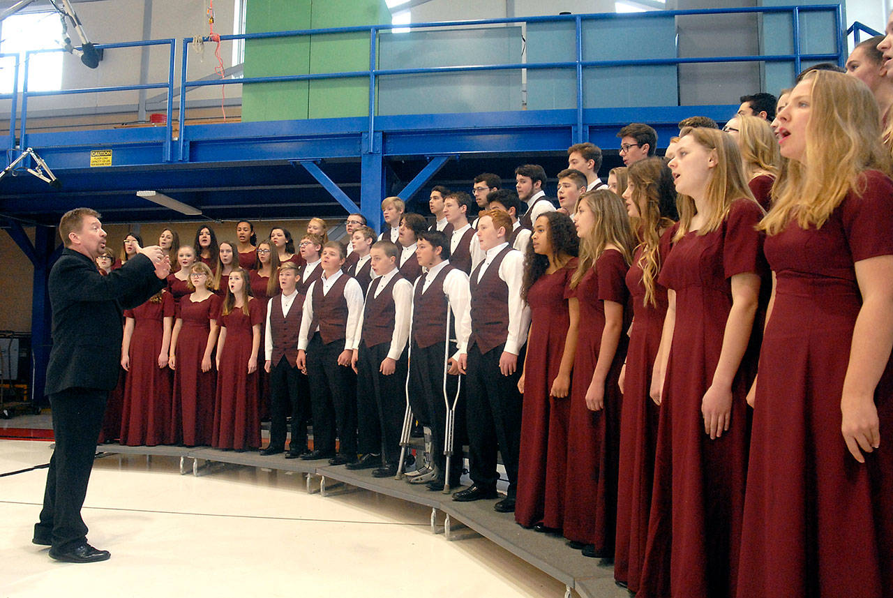 The ceremony included patriotic music — such songs as “The Star-Spangled Banner,” “You’re a Grand Old Flag,” “Battle Hymn of the Republic,” “Shenandoah,” “God Bless America” among others, as well as “Amazing Grace” — performed by the Port Angeles High School Band, Sequim High School Select Choir, Olympic Peninsula Men’s Chorus, bagpiper Rick McKenzie and Grand Olympics Chorus of Sweet Adeline’s International.