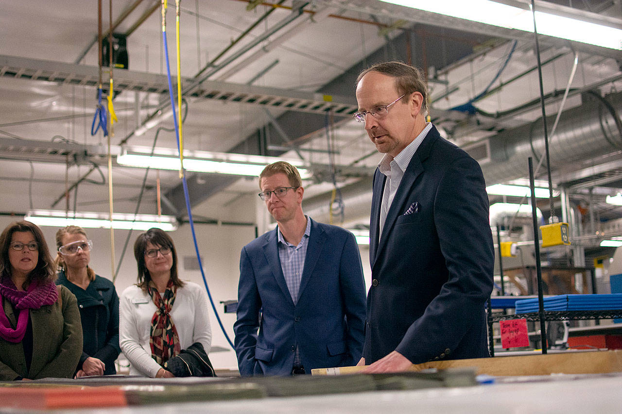 PORT ANGELES — U.S. Rep. Derek Kilmer joined First Federal Community Foundation officials as they presented a $50,000 check to the Composite Recycling Technology Center in Port Angeles during a tour of the plant.