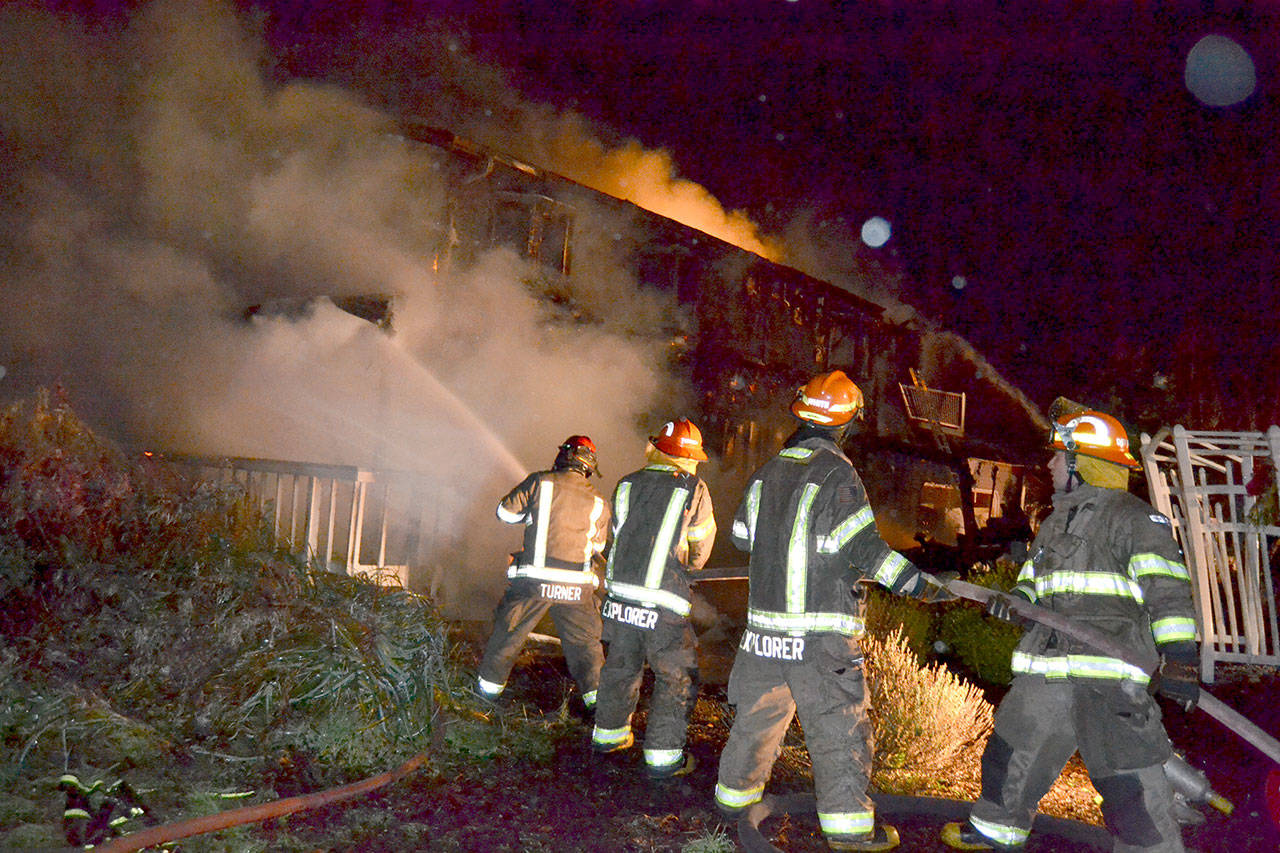 Clallam County Fire District 3 crews arrived at 223 3 Crabs Road in Dungeness north of Sequim at 8:23 p.m. Monday to find a two-story vacation rental fully engulfed in flames.