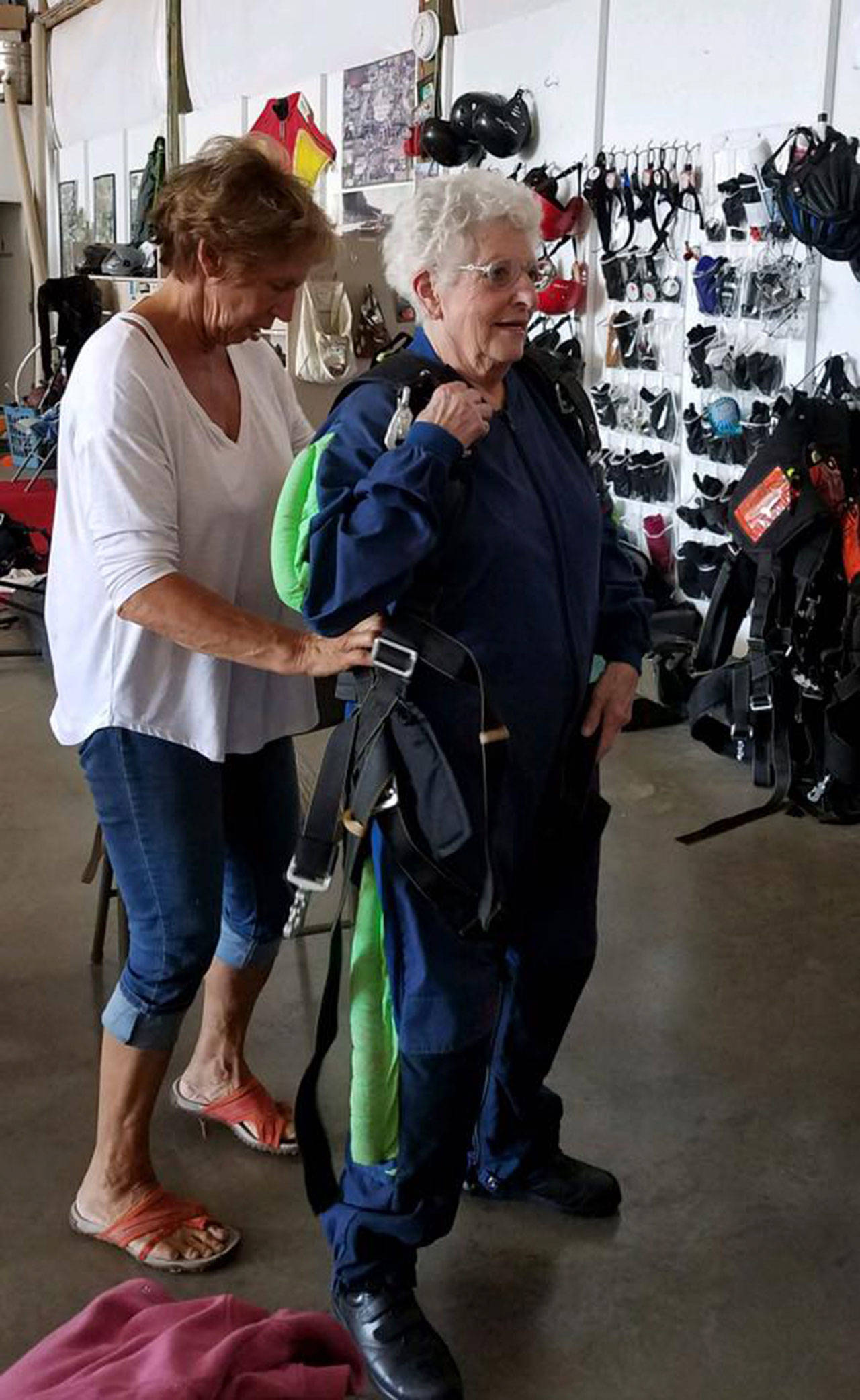 Six times now, the retired travel agent has jumped from a plane flying at 13,000 feet.
