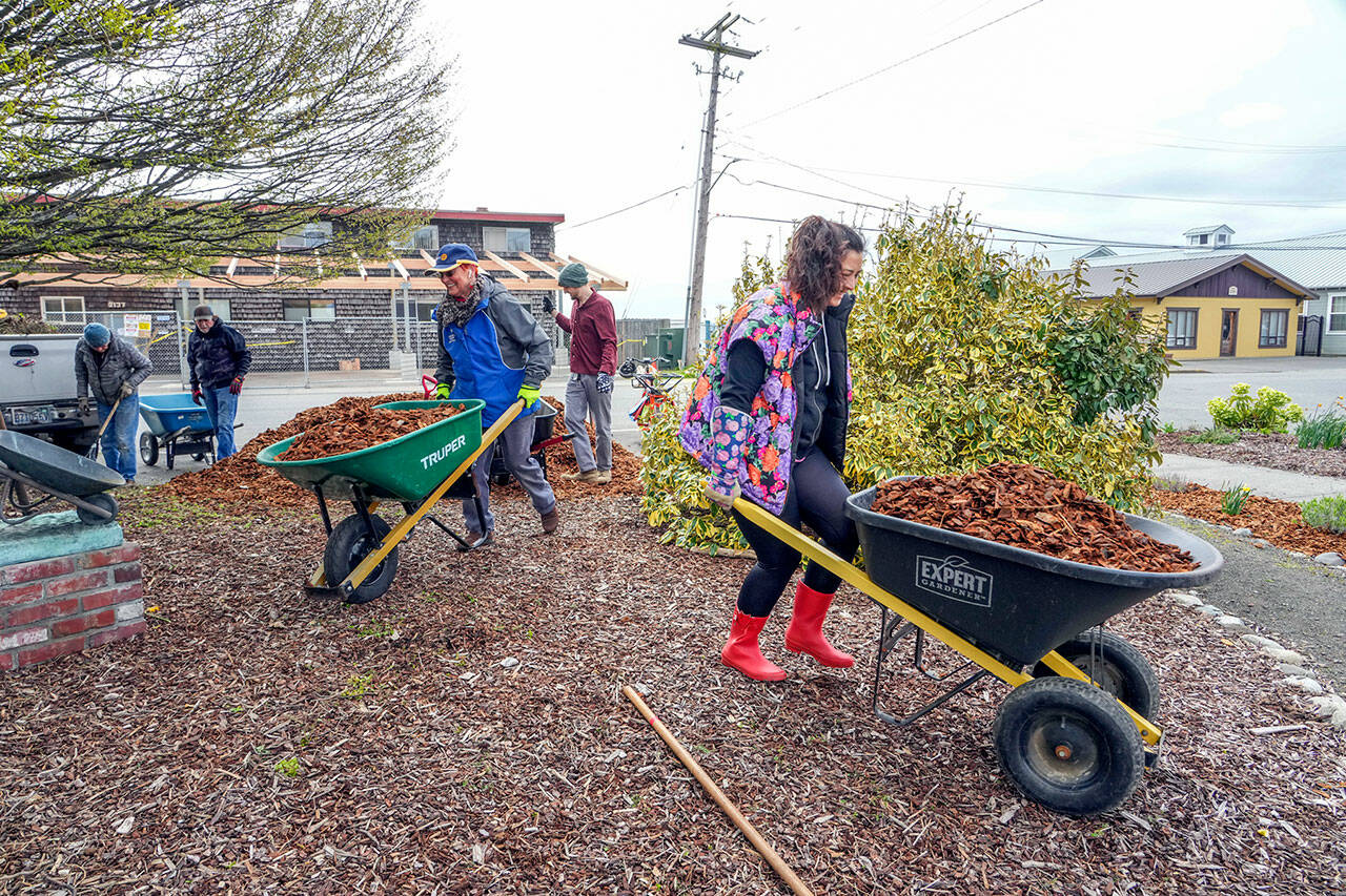 Joan Mickelson of Anacortes, left, and Doug Atterbury of Port Angeles scour the shores of Port Angeles Harbor on Ediz Hook on Saturday looking for refuse as an Earth Day activity in Port Angeles. Washington CoastSavers and Olympic National Park, as well as several other organizations, hosted beach cleanups across the North Olympic Peninsula.