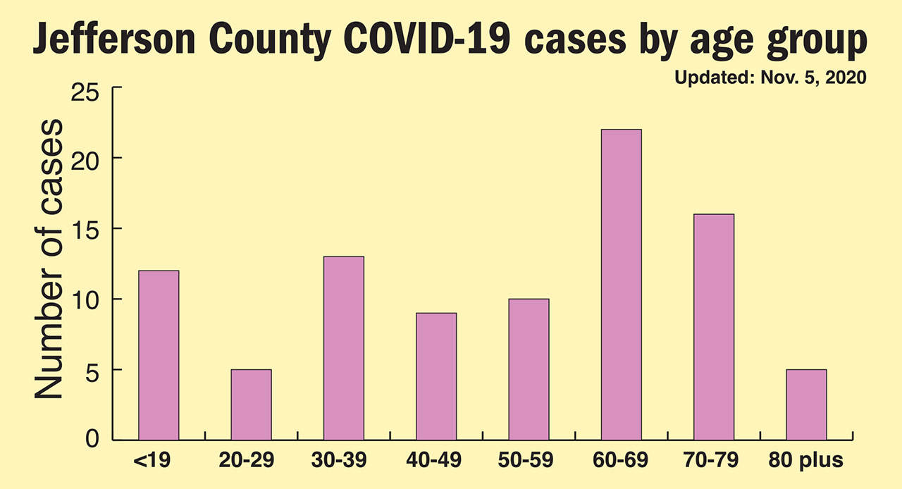 Jefferson County has had 92 cases since March with five active cases and a listed infection rate of 25.08 per 100,000 over the past two weeks.