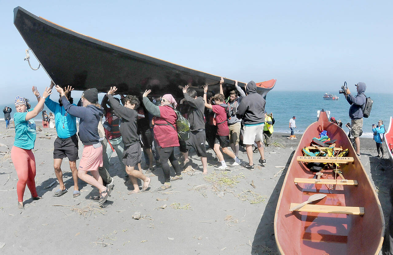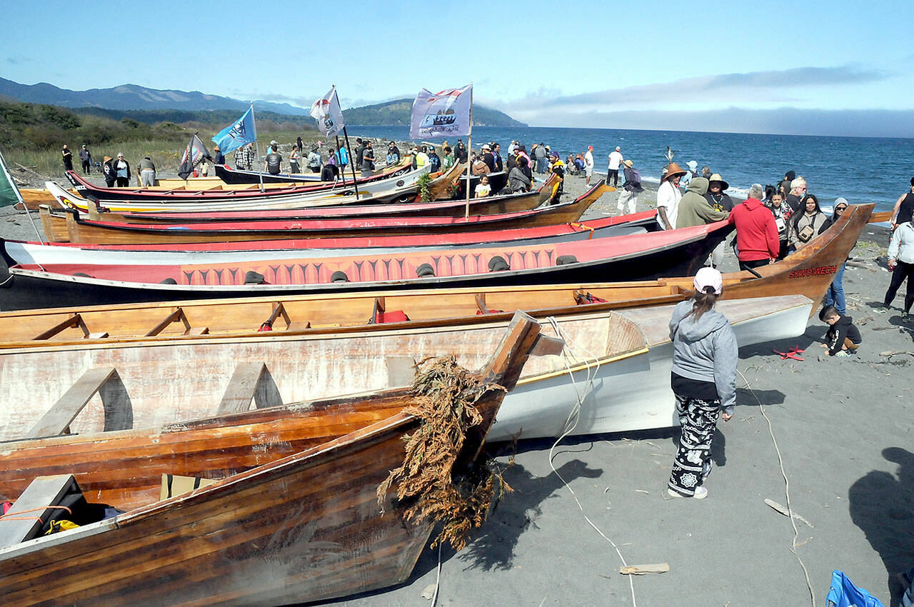 PORT ANGELES — With white caps on the sea, canoes battled strong currents to reach Elwha Beach on Thursday for the final landing of the 2025 Canoe Journey Paddle to Elwha.