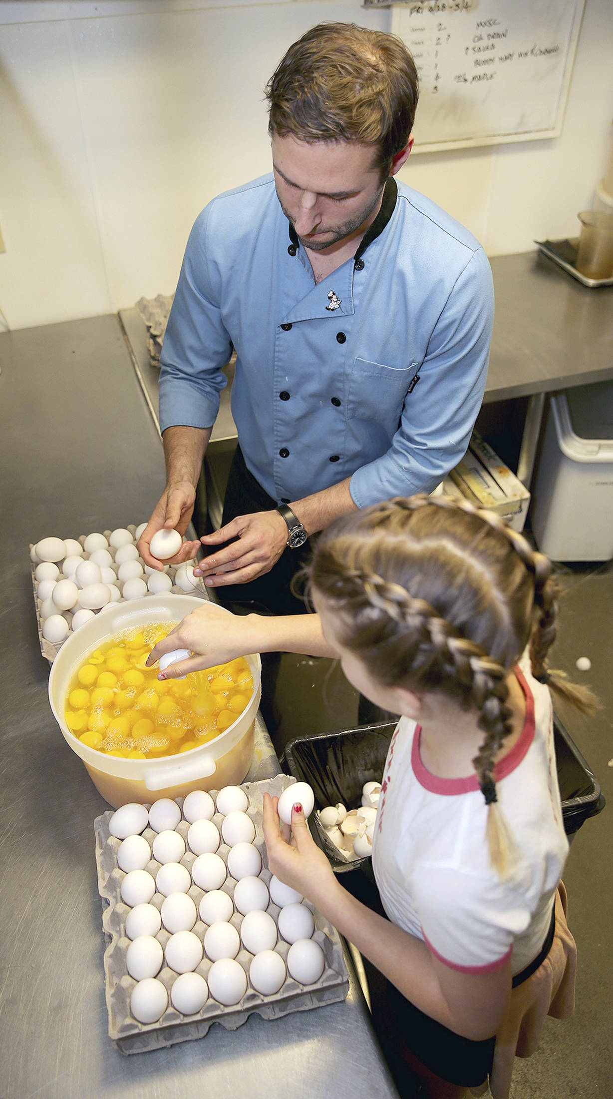 On an average day, owner Ross McCurdy, who honed his skills at the original Oak Table Cafe in Sequim, says the restaurant can go through 2,000 eggs. And with hungry customers waiting, time is imperative.