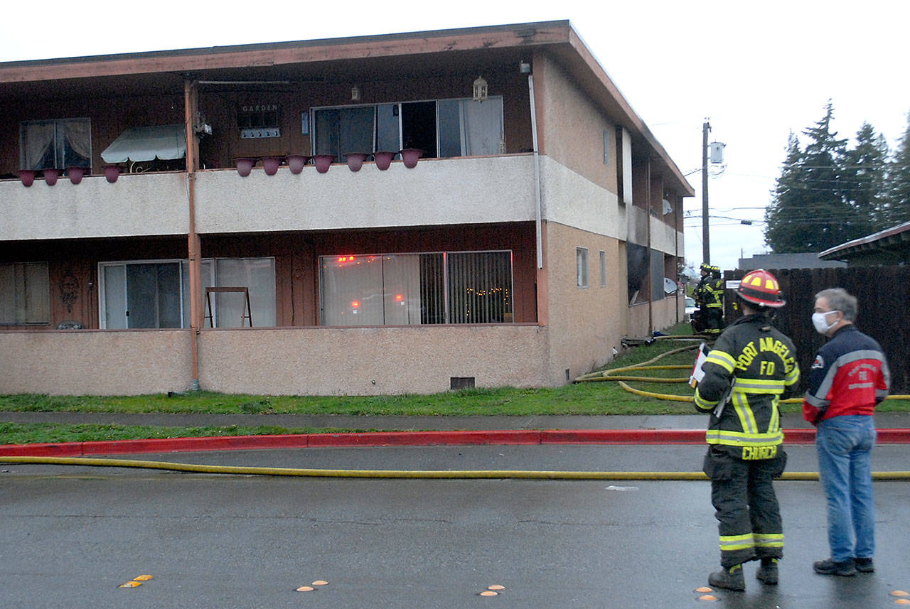 Port Angeles Fire Lt. Jeremy Church said the blaze appeared to have started on a patio on the ground floor and then spread into the adjoining apartment.