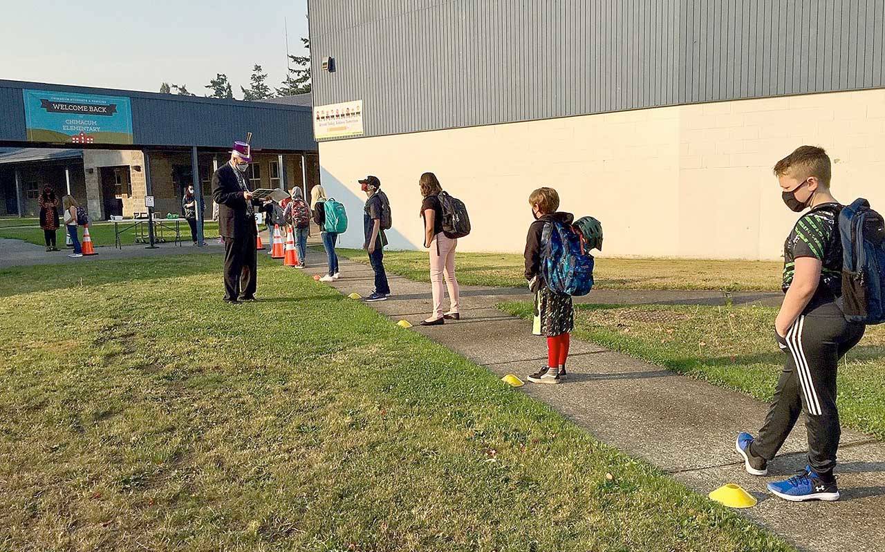 Kindergartners in Chimacum are set to start the school year Thursday, spending half their day in class and the other half learning remotely.