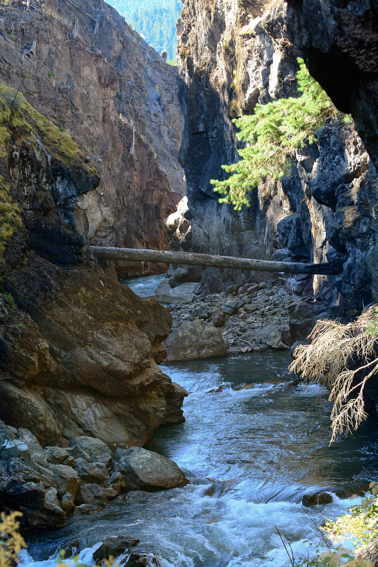 The Elwha River rushes through Glines Canyon, a site that had been difficult for fish to navigate past until officials blasted boulders that blocked the river. (Jesse Major/Peninsula Daily News)