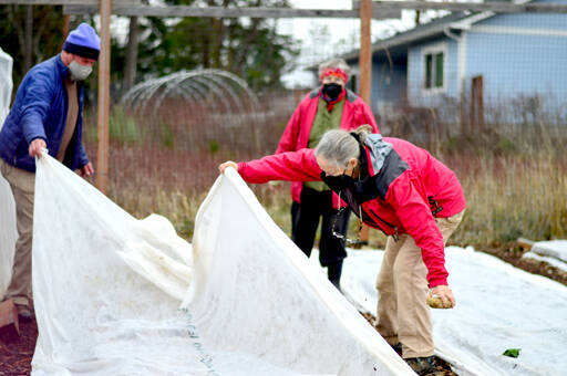 While January looks like quiet time in the Quimper Grange garden, things are growing, said FBF&G vice president Mark Paxton. Weed seeds are germinating, in the salad-greens rows and in the perennial herb garden out front. Volunteers Morgana Bernard and Mary Beth Haralovich were busy last Friday weeding the latter.