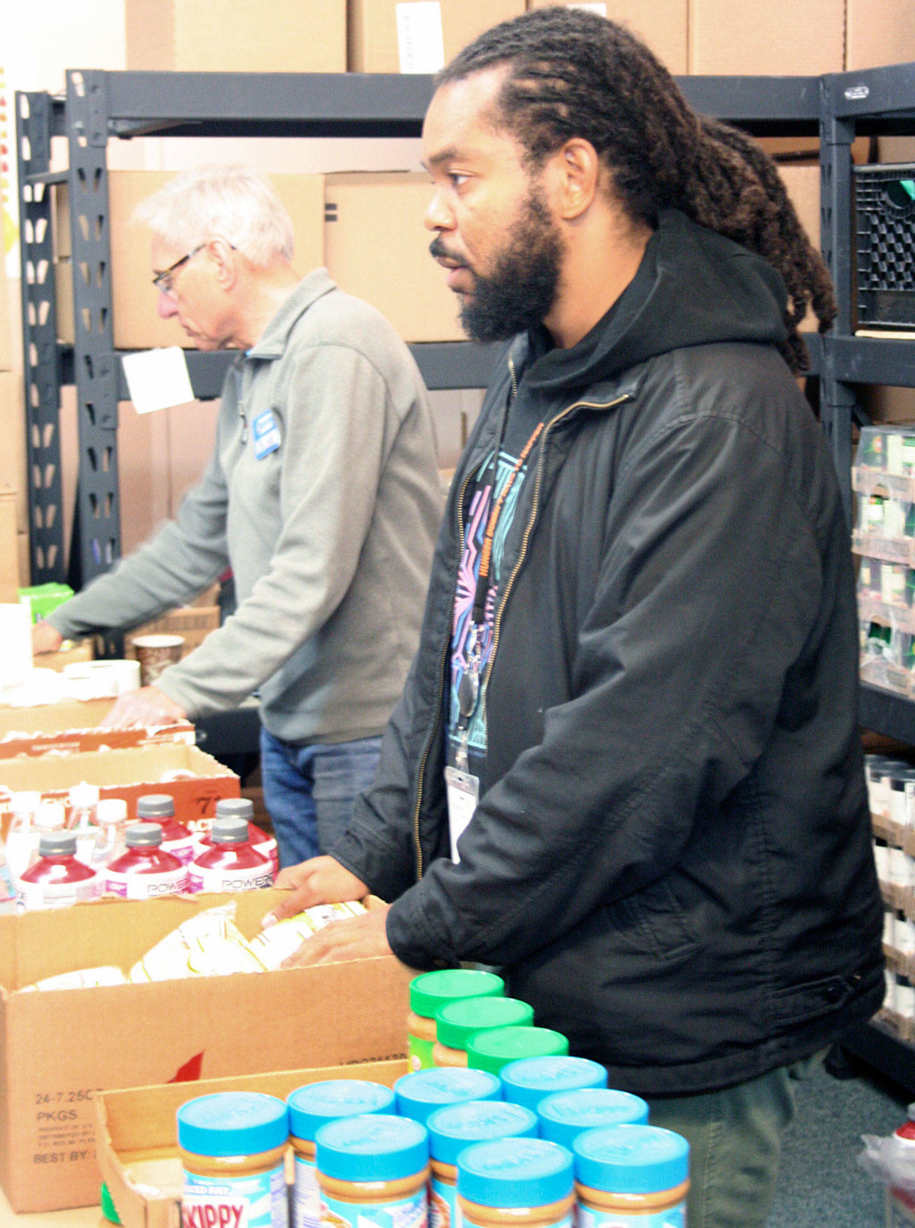 A line formed prior to the 10 a.m. weekly service, and when manager Mike Boock opened the doors at 760 Chimacum Road in Port Hadlock, clients came in a single-file line, started picking out grains and canned goods and advanced to protein and veggies before they reached the baked goods.