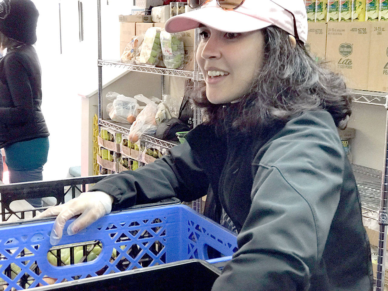 PORT HADLOCK — Colorful fruits and vegetables lit up the Tri-Area Food Bank on Wednesday as more than 20 volunteers stationed behind tables loaded goods into large boxes for clients.