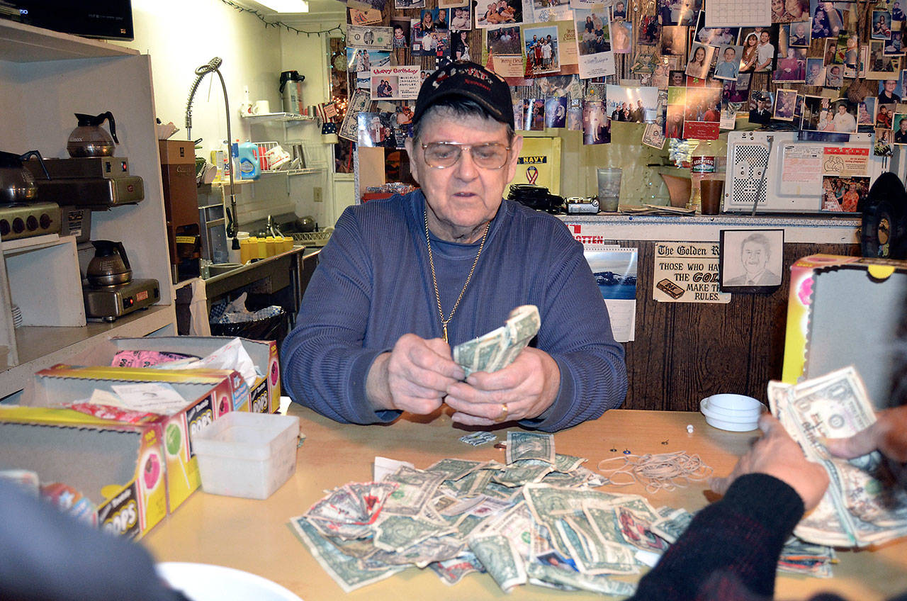 Schmidt asked the local Boy Scout troop to come in and take the money down every five years. It is then donated to the Scouts and other organizations.
