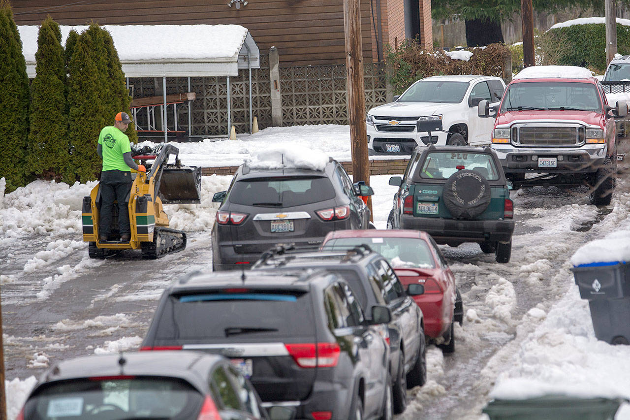 That led to a crew meeting at the house Tuesday, turning five hours of work into an effort that took less than an hour, he said. While a handful of people cleared the roof and others were clearing snow behind house and around the pool, Olekas used a mini skid steer to plow snow from the driveway.
